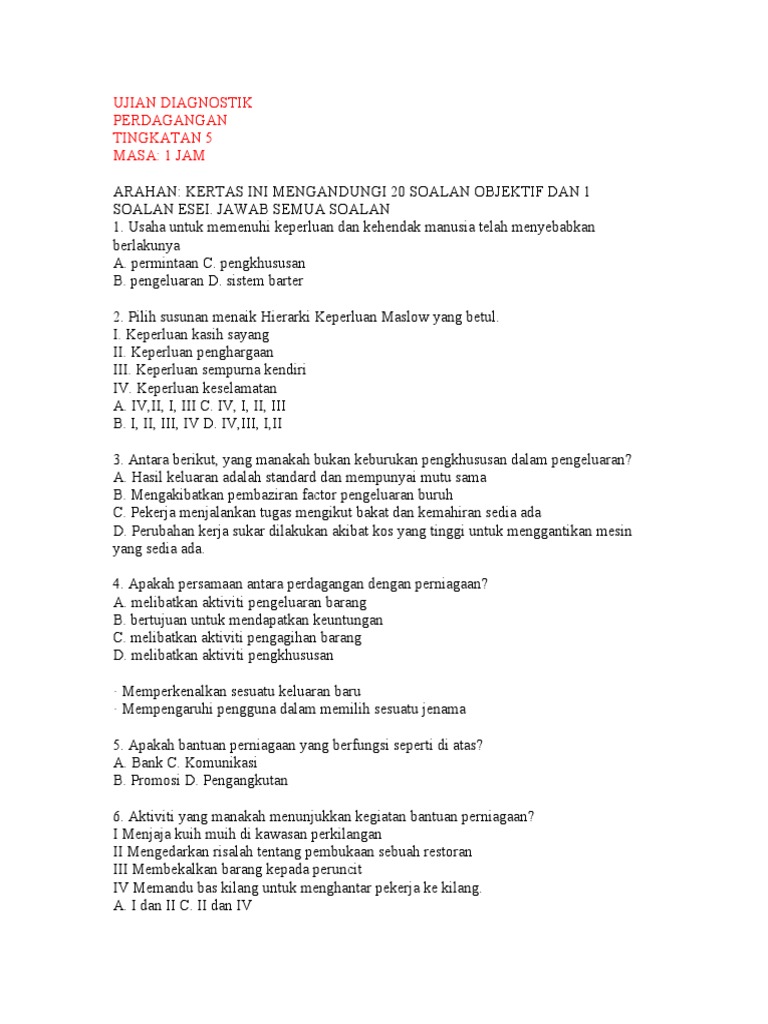 Ujian Diagnostik Perdagangan Tingkatan 5 Pdf