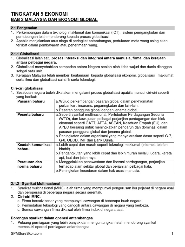 Eko F5 Bab 2 Pdf Modul Nota Ekonomi T5 Bab 2 Malaysia Dan Ekonomi Global 2 1 Globalisasi 2 1 1 Globalisasi Globalisasi Ialah Proses Interaksi Dan Course Hero